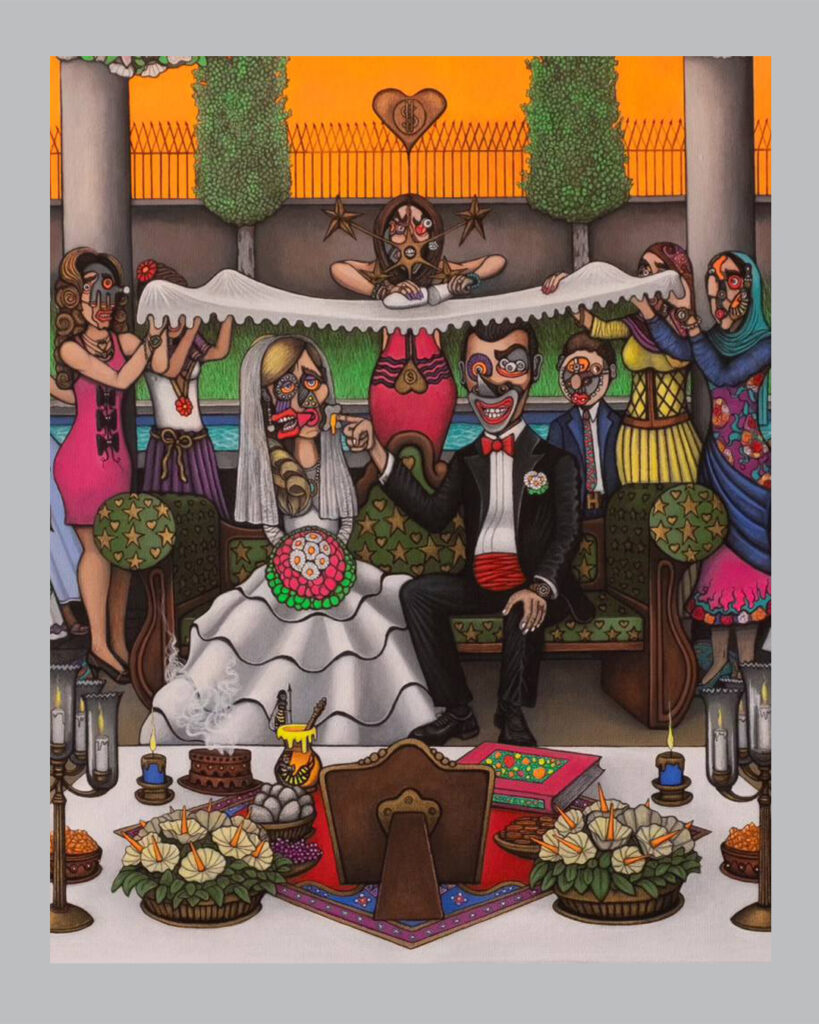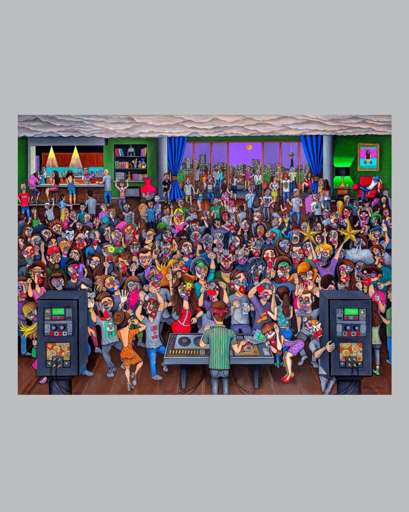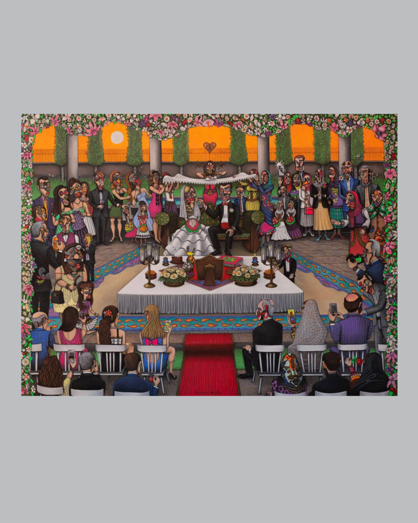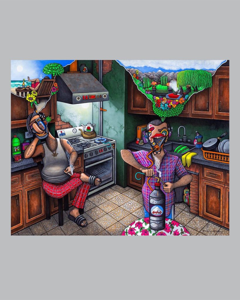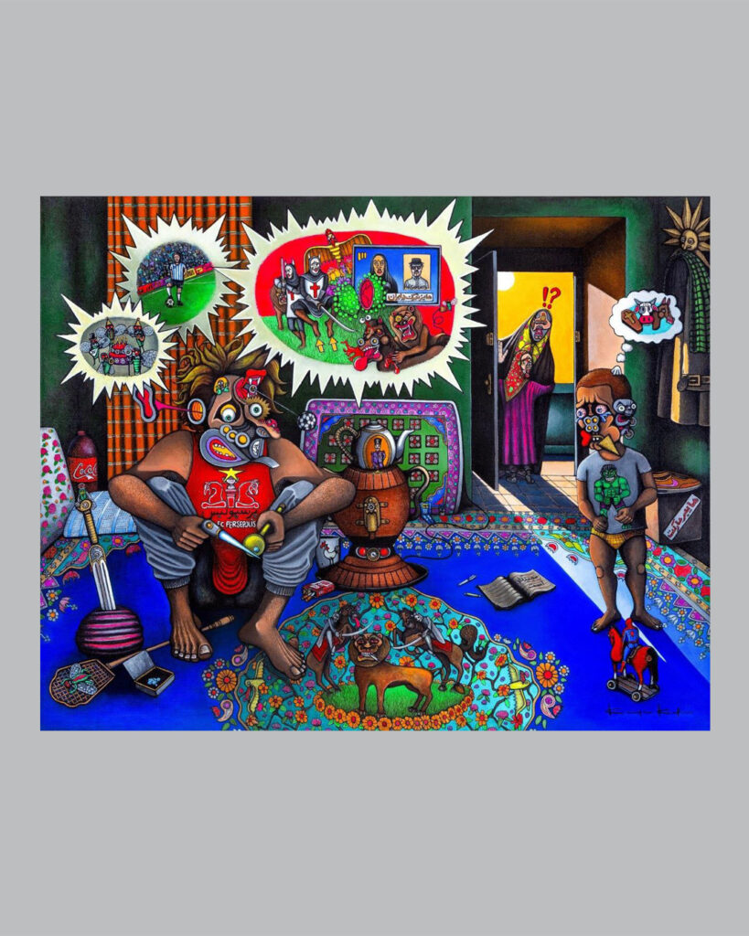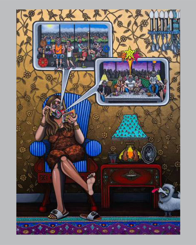 در مهرماه ۱۴۰۴، نمایشگاهی از نقاشی‌های کامیار کفایی با عنوان «کنترل مواد سمی» در گالری آران برگزار شد. این مجموعه شامل یازده تابلو نقاشی با تکنیک آکلریک روی بوم بود. با ورود به نمایشگاه و مواجهه با اولین اثر، با جمعی از انسان‌ها روبه‌رو می‌شدی که در فضایی آشنا (آن‌قدر آشنا که حس می‌کردی خودت پیش‌تر در آن فضا بوده‌ای) حضور داشتند. در ادامه‌ی این سفر به عالم آثار، باز هم با مکان‌ها و جوامعی آشنا روبه‌رو می‌شوی: مهمانی‌ها، دورهمی‌ها، پارتی‌ها… حتی در جایی، در حین گالری‌گردی، ناگهان در همان لحظه‌ی حضور در نمایشگاه، در دام اثری می‌افتی. گویی خود، پیش‌تر یا بعدتر، در این جمع‌ها و مناسبت‌ها حضور داشته‌ای یا خواهی داشت. این حس آشنایی و حضور، نخستین و بزرگ‌ترین گام برای فرو رفتن در عالم خیال کامیار کفایی است. یا شاید بهتر باشد گفت، در عالمی که دیگر خیال نیست؛ بلکه ورود به مختصات منظرگاه هنرمند است. از دریچه‌ی چشم او، به واقعیت انسان‌ها، مناسبات و روابطشان نگاه می‌کنی. آثار آن‌چنان جزئیاتی داشتند که حتی اگر ساعت‌ها در برابر هر اثر می‌ایستادی، باز هم چیزهایی در آن باقی می‌مانْد، که ندیده بودی. هر بار که دوباره مقابل یکی از تابلوها می‌ایستی، ناخودآگاه انگشت اشاره‌ات را به سمتی می‌گیری و با هیجان به همراهت می‌گویی: «این‌جا رو ببین! فلانی داره این کار رو می‌کنه!» یا «اون قسمت رو نگاه کن!» و ناگاه جمله‌ای بی‌اختیار از دهانت بیرون می‌آید: «یادش بخیر، چه خوب بود…» هنرمند داستان‌هایی را روایت می‌کند که به هیچ‌وجه از خاطره‌ی جمعی ما ایرانیانِ معاصر بیگانه نیستند. گاهی روایتش به گذشته‌ای نه‌چندان دور می‌رود، گاه در لحظه‌ی اکنون متوقف می‌شود، و در بعضی آثار، حال‌وهوای مکان‌ها و فضاهای غایب، ما را به دوران کودکی‌مان پرتاب می‌کنند. گاه نیز اشاره‌هایی به ده سال پیش‌تر دارد؛ اما از لباس آدم‌ها گرفته تا روبالشی‌ها، مبلمان و جزئیات محیط، همه با دقتی روان و دلنشین انتخاب شده‌اند تا در ذهن بیننده دلالت‌ها و مدلول‌های بسیاری بسازند. در همین‌جاست که با روانی نگاه هنرمند روبه‌رو می‌شوی؛ گویی او در لحظه‌ی خلق اثر نیز در همان فضا حضور داشته است. انسان‌ها در حالاتی سرخوش و بی‌پروا تصویر شده‌اند. چهره‌ها به‌روش واقع‌گرایی پرتره‌نگاری نشده‌اند، اما بیننده هرگز درگیر پرسش از چرایی این نوع پرداخت نمی‌شود، چراکه استفاده‌ی درست از نشانه‌ها، تمام راه را برای ارتباطی مستقیم هموار کرده است. مخاطب ناخواسته در مسیر نگاه فیگورها حرکت می‌کند، نگاهشان را دنبال می‌کند، و در شبکه‌ای از نگاه‌کردن‌ها و دیده‌شدن‌ها گرفتار می‌شود. تا جایی که شاید با لبخند و شگفتی بگوید: «نگاه کن! این داره به اون نگاه می‌کنه!» و درست در همان لحظه، دری به نوعی تازه از نشانه‌شناسی در ذهنش گشوده می‌شود. جایی که نگاهی در نگاه دیگر امتداد می‌یابد. ورود به جهان آثار، بی‌آن‌که خودت متوجه شوی، تغییری در درونت ایجاد می‌کند. تا پیش از آن، در برابر تغییر شکل و فرم چهره انسان‌ها (چیزی که هر روز می‌بینیم و به آن‌ها عادت کرده‌ایم) مقاومتی نشان نمی‌دادیم و حتی آن را طبیعی می‌پنداشتیم. اما درست در همین نقطه است که جادوی هنرمند جرقه می‌زند. کامیار کفایی جوامعش را در سرخوشی‌های جمعی و انفرادی غرق می‌کند؛ در لحظاتی که گویی در فضای اثر شناور می‌شوی. اما این لحظه‌های سرخوشی، از شادی نمی‌آیند؛ بلکه از لذت می‌آیند. شادی حاصل سفری درونی و ماندگار است، اما لذت، لحظه‌ای زودگذر است که به هر وسیله‌ای می‌تواند حاصل شود. پس از مدت کوتاهی، جایش را به نوعی اندوه هولناک می‌دهد. در مسیر دستیابی به لذت بیشتر، حریص‌تر و حریص‌تر می‌شویم، اما چیزی جز لحظه‌هایی کوتاه‌تر و گذراتر به دست نمی‌آوریم. در پسِ این قاب‌های شفاف (چه در رنگ و چه در پویایی) اشاره‌ای نهفته است به فرار انسان از لحظاتی که خود از آن‌ها گریزان