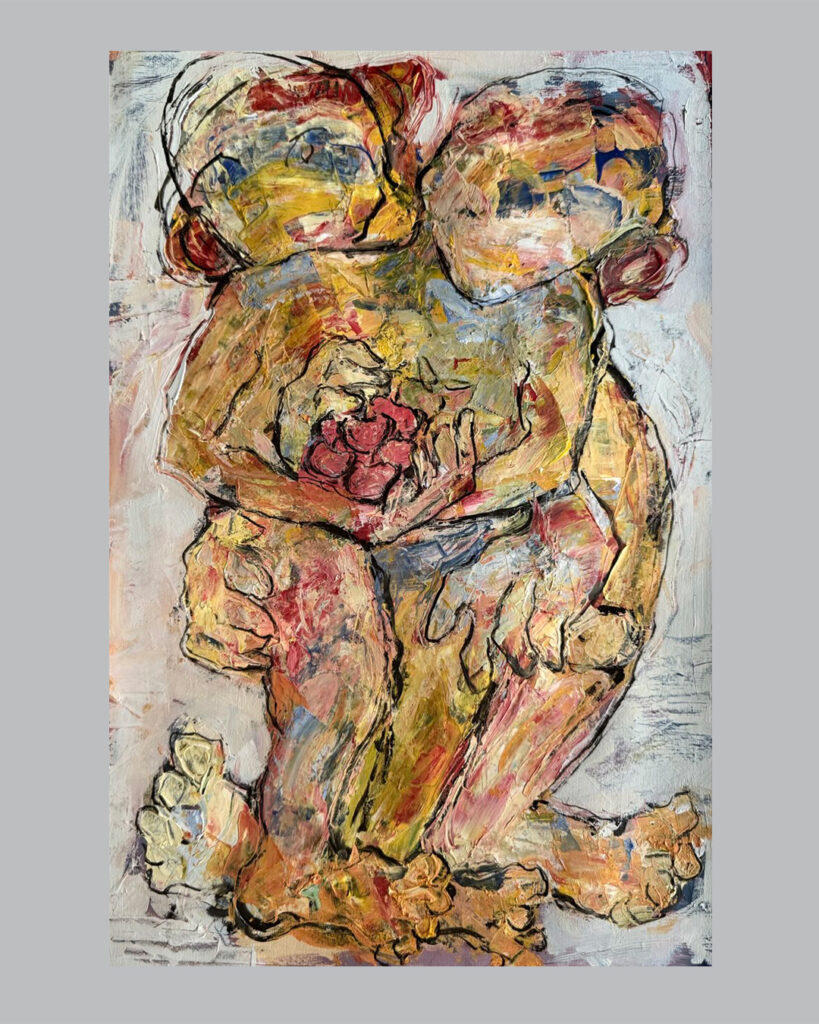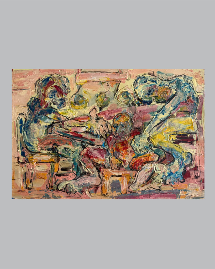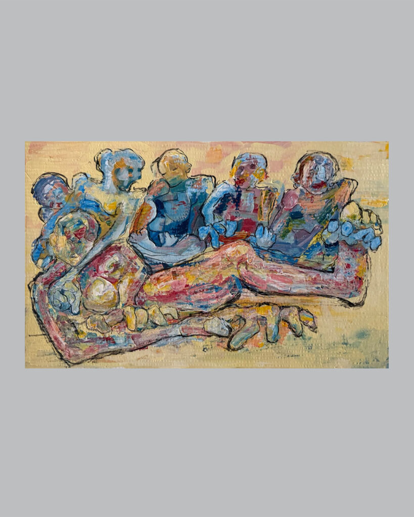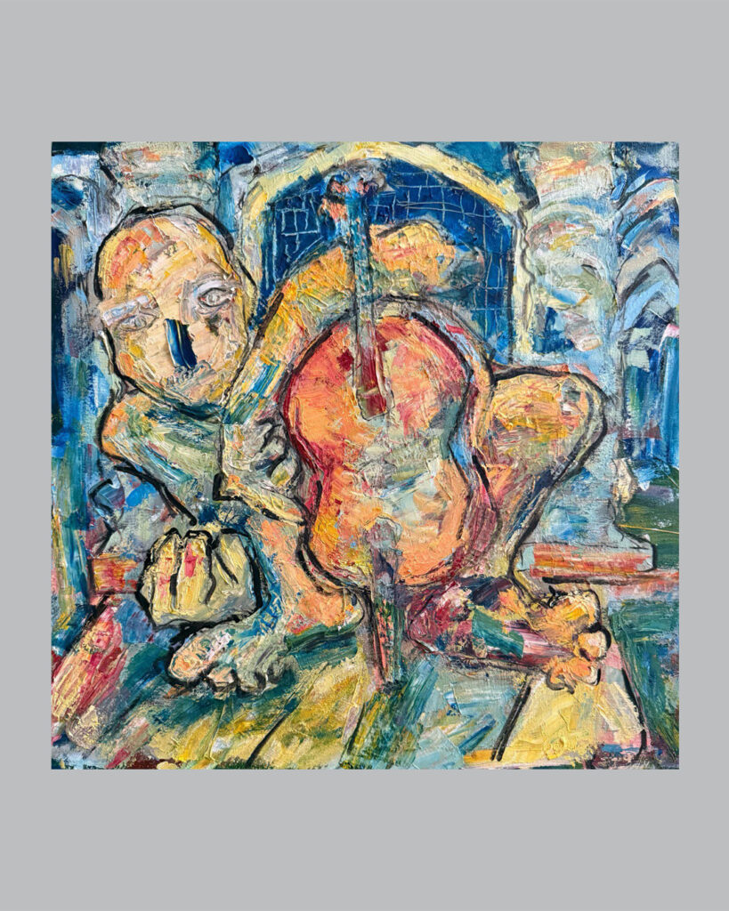 آثار رضا قاضی دو بُعد به‌ظاهر متمایز از ساحت عینی و ذهنی را با هم آشتی می‌دهند: زندگی روزمره و اسطوره. این کارها دو حس و معنا را هم‌زمان در خود منعکس می‌کنند. از یک سو به‌نظر می‌رسد شاهد یک صحنه‌ی معمولی و عادی از زندگی روزمره هستیم. از سوی دیگر انگار لحظه‌ای آیینی و اسطوره‌ای را به‌نظاره نشسته‌ایم. از جهت دیگر برای این آثار عناوینی در نظر گرفته شده که بعضی صحنه‌‌ای متداول و عادی را به ذهن می‌رساند (مثل «مادر، پدر و فرزندان» ، «مطرب» یا «با من برقص») و برخی دیگر لحظه‌ای متمایز و آیینی (مثل «ضیافت» ، «آدم و حوا، سیب» یا «در انتظار معجزه» ) . به‌نظر می‌رسد تقریباً همه‌ی آثار هم‌زمان به هر دوی این حالت از تمایز فوق، تعلق دارند. به این معنی که لحظه‌ای از زندگی روزمره را می‌بینیم که باری آیینی و اسطوره‌ای دارد؛ چه آثاری که عنوانشان لحظه‌ای از زندگی روزمره را تداعی می‌کند، چه کارهایی که عناوینی آیینی را یدک می‌کشند. در نگاه کارل گوستاو یونگ این دو ساحت به‌لحاظ نظری از هم جدا نیستند. شما ممکن است در زندگی روزمره با لحظه‌ای روبه‌رو شوید که گویی بار معنایی متفاوتی برای‌تان دارد؛ ممکن است شما را به صحنه‌ای آیینی متصل کند، مثل یک ضیافت که هم‌زمان می‌تواند ضیافتی معمولی و عادی باشد یا شبیه به آیین‌های برگزاری بزم و سور گذشته به‌نظر برسد. یا در نمونه‌ای دیگر، می‌شود اتفاقی روزمره که به‌ظاهر فاقد معنایی خاص است، به قصه‌ی اسطوره‌ای آدم و حوا شباهت پیدا کند. در نگاه نظریه‌پردازانی مثل یونگ یا جوزف کمبل، اسطوره جزئی لاینفک از ذهن است و در زندگی روزمره هر آنْ امکان دگردیسی و تغییر لحظه‌ی روزمره به لحظه‌ای آیینی با بار اسطوره‌ای وجود دارد. آن‌چه در فرم کارهای رضا قاضی این تغییر معنا از ساحت روزمره به آیینی را نشان می‌دهد، پنهان کردن جزئیات فیگوراتیو با رنگ‌ و خط‌ است. از طرف دیگر، معمولاً در این تصاویر تعداد فیگورها، به‌تعدادی است که از دید یونگ و اسطوره‌شناسان دیگر، اعدادی با بار معنایی اسطوره‌ای هستند، مثل ۲ یا ۳. در نهایت آن‌چه از تصاویر برمی‌آید این است که آثار رضا قاضی سعی در نمایش لحظه‌ای از یک زندگی روزمره را دارند، که از ساحت روزمرگی خارج و به دنیای اساطیر و آیین‌ها متصل گشته است. این صحنه‌ی خاص تصویر را از نمایش یک دنیای عینی به تصویری از جهان ذهنی منتقل می‌کند. گرچه انگار ایده‌ی اولیه، یک لحظه‌ی مواجهه با اتفاقی معمولی‌ست با کمک ترفندهای فرمی، آن لحظه، به تصویری متمایز، با بار معنایی اسطوره‌ای تبدیل می‌شود.