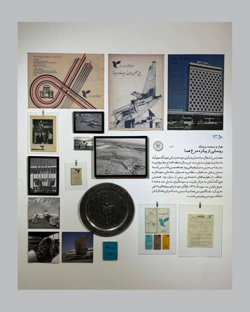 نمایشگاه آرشیوی «صبحانه در تهران، نهار در پاریس» در گالری دنا (1404) نیز بازتابی از حافظه جمعی ایرانیان در دو دهه پیش از انقلاب 57، در مورد برند، تاریخچه، گرافیک، معماری و فعالیتهای هواپیمایی ملی ایران «هما» و همچنین رویکرد روابط عمومی این مجموعه در خصوص انتشار کاتالوگهای دو زبانه خود بود. از منظر متدولوژیک، « صبحانه در تهران، نهار در پاریس» ترکیبی از گردآوریِ فیزیکی اسناد، تصاویر، اشیاء و نمایشِ انتخابشده و مستندسازیِ تحقیق (که در قالب یک کتاب منتشر شد) بود؛ آنچه پروژه را بهسمت پژوهشیبودن سوق میداد نه صرفا خودِ اشیا، بلکه متنهای پژوهشی بود که در کنار نمایش فیزیکی قرار گرفتند. انتشارِ کتابی با عنوان «هواپیمایی ملی ایران، هما» صفحهای همزمان با نمایشگاه نشاندهنده آرمانِ پروژه برای تبدیلِ یک رویداد موقت به یک منبع ماندگار پژوهشی است؛ اقدامی که مطابق با رویههای خوب کیوریتوری پژوهشمحور عمل میکند و به تداوم امکان مطالعه و ارجاع پس از پایان نمایشگاه یاری میرساند.