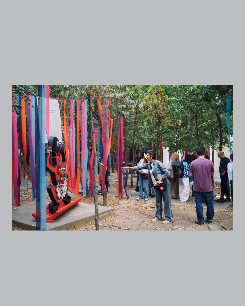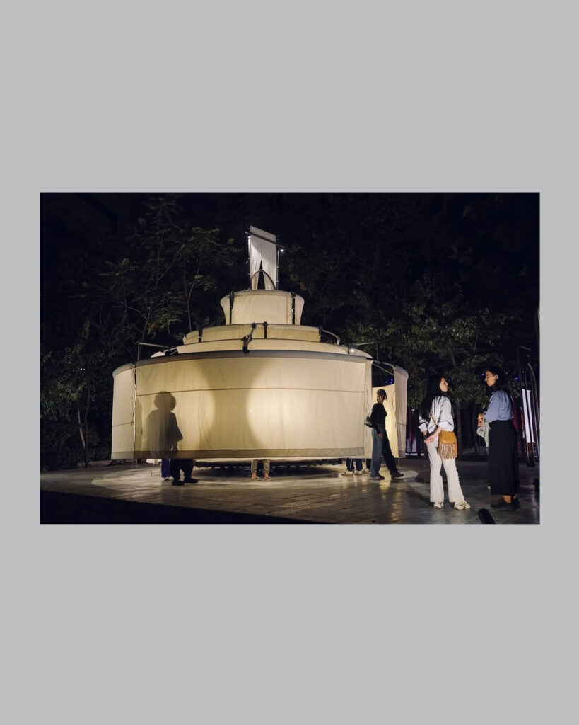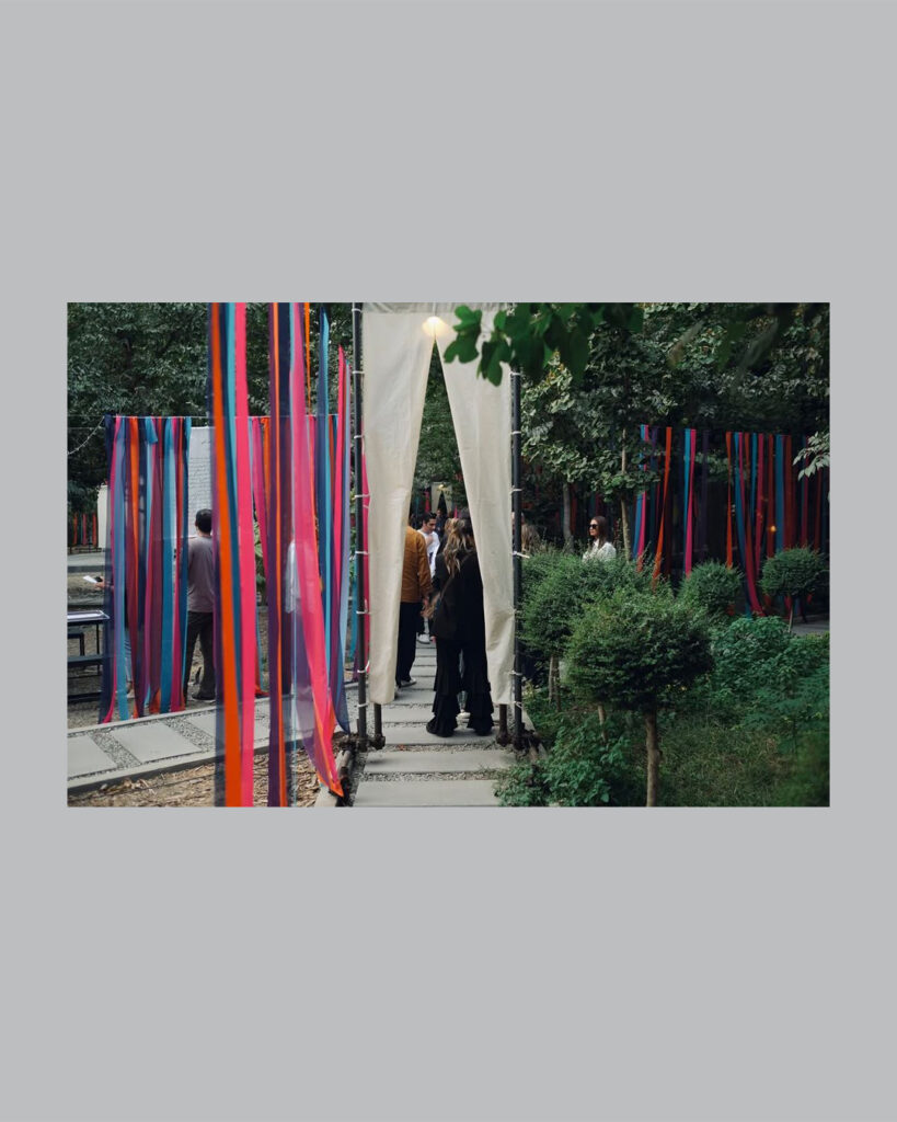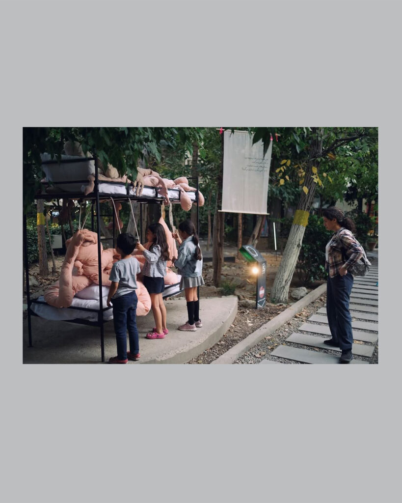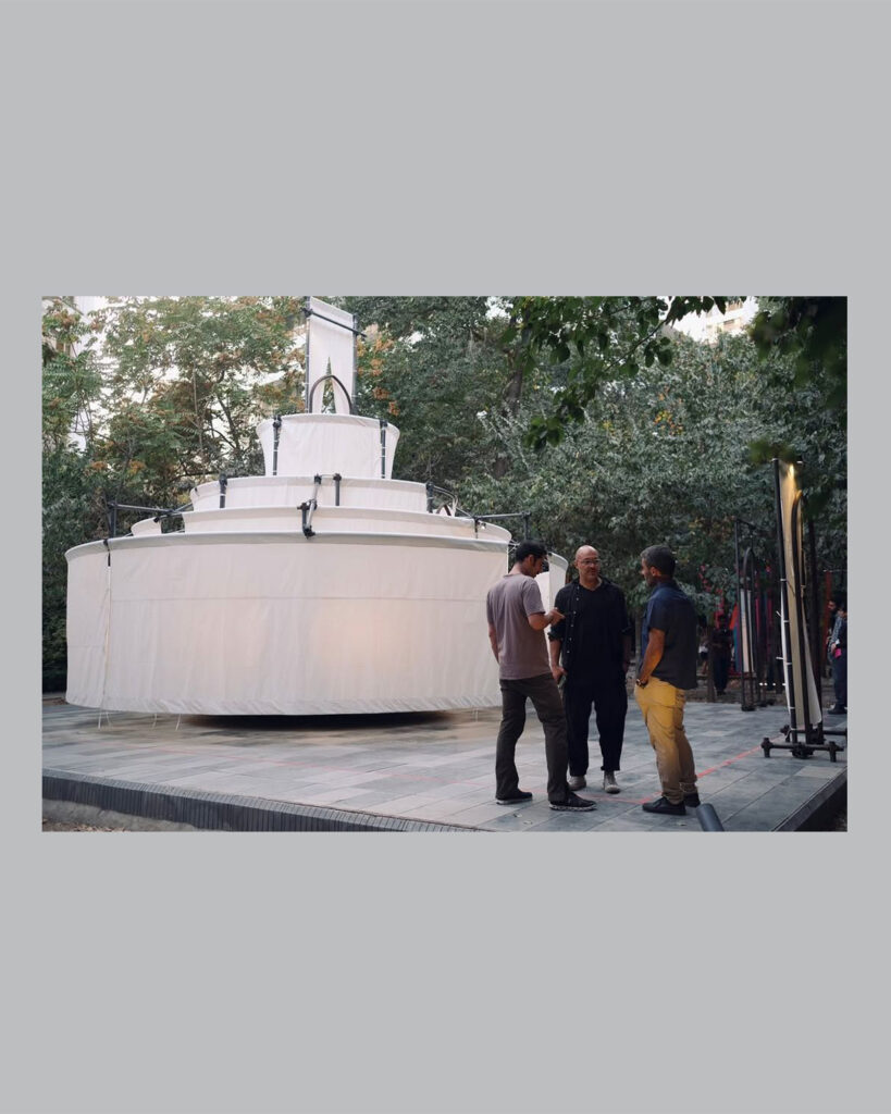 یکی از چیدمانهای این نمایشگاه با عنوان «حجله» عرصهای عریض و مرتفع از پارچههای سفید و راه و بیراهههایی در میان آن است که با حرکت مخاطب در مرکز آن، شروع به حرکت نموده و صوتی مرتبط با آن حیطه در فضای باز این چیدمان در حال پخش قرار داده شده بود. محسن رافعی، خالق این اثر در استیتمنت این چیدمان چنین نوشته است که: «حجله شرحی بر وجود ماست در سایه غیاب، غیاب هر آنچه بوده یا میتوانست باشد. سوگواری برای فقدانی که در عین بودن و زیستن، هر لحظهاش به تمرین غیاب بدل شده است. جایی که تجسم زنده فقدان جمعی را رقص کنان و بازیگوشانه برای رویاها و آرزوهای نازیسته خودمان تمرین میکنیم».
