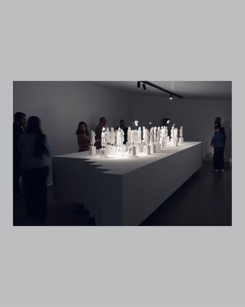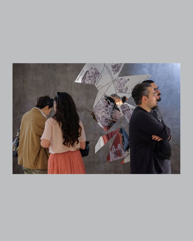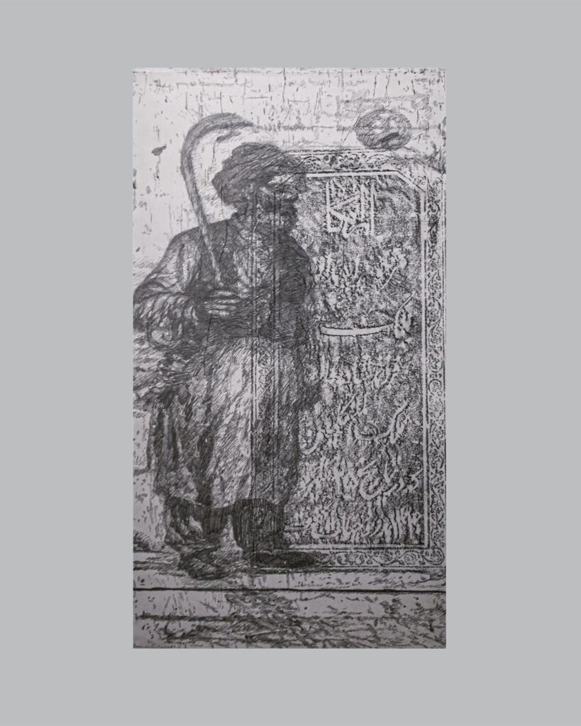 در چیدمان تاملبرانگیز دیگری که اثر امیر محمدزاده بود، چیدمانی که با بازآفرینی نقوش سنگ مزار برخی از کنشگران انقلاب مشروطه، آن هم با فرایند میدانی و مداخلهگرانه و به صورت طراحی در محل مزار انقلابیون مشروطه شکل گرفت که با حجمهایی به شکل دستهای نمادین تلفیق شده بودند. مجسمه دستها «میان نشانههای پیروزی، اعتراض، سکوت و پرسش معلقاند و همچون لمسهای بیبدن، بدل به صدای جمعی میشوند. آنها در کنار بافتهای سنگی، ردّ حضوری غایب را بازتاب میدهند و خود بخشی از زبان پروژهاند». محمدزاده در بخشی از بیانه چیدمان خود نیز آورده است که: « انتخاب من بر چهرههای شاخص دوران مشروطه مانند میرزاده عشقی، ستارخان، صوراسرافیل، ملکالمتکلمین و میرسید محمد طباطبایی است؛ رد فیزیکی حضورشان بر سنگ، بدل به سندی زنده میشود که هم فاصله و هم پیوندی میان جهان مردگان و زندگان ایجاد میکند. در کنار شخصیتهای مشهور، سنگ قبرهای اعضای خانوادههایشان نیز ثبت شده است، مانند سنگ قبر پدر سید محمد طباطبایی یا اعضای خانواده ملکالمتکلمین در همان قبرستان. ثبت این بافتها بخشی از تلاش پروژه برای برقراری ارتباط ملموس با تاریخ است و امکان تجربه دوباره آنها را فراهم میآورد. این فروتاژهای خام، ثبت ملموس بافت و جزئیات تاریخیاند. فروتاژ در اینجا نه صرفا برای استخراج فرم، بلکه برای استخراج پرسش بهکار رفته است؛ پرسشی دربارهی مرز میان حافظه و فراموشی، میان سند و خیال و میان روایت رسمی و روایتهای شخصی و خیالی. روی این بافتهای سیاهوسفید، لایههایی از تصویرسازیهای رنگی، طنزآلود و معاصر افزوده میشود. صحنههایی خیالی که قهرمانان تاریخ را در موقعیتهای امروزی قرار میدهند: عشقی در استودیوی ضبط پادکست، ستارخان در صف بازرسی فرودگاه، یا صوراسرافیل در جدال با سانسورچی دیجیتال. این تضاد میان بافت خام و تصویرسازیهای رنگی، تنش و تعامل بصری ایجاد میکند و فضایی برای گفتگو میان گذشته و حال فراهم میآورد. پروژه با بهرهگیری از تصاویر و منابع تاریخی دوره مشروطه غنی شده است. برخی از این تصاویر بازسازی شده و با تغییراتی به فضای پروژه بازگردانده شدهاند تا پیوندی میان گذشته و تجربهی معاصر برقرار شود. این فرایند همزمان پروژه را به یک سند تاریخی و آرشیو بصری بدل میکند و امکان میدهد که نسخهای از این تجربهها در هر شرایطی محفوظ بماند».